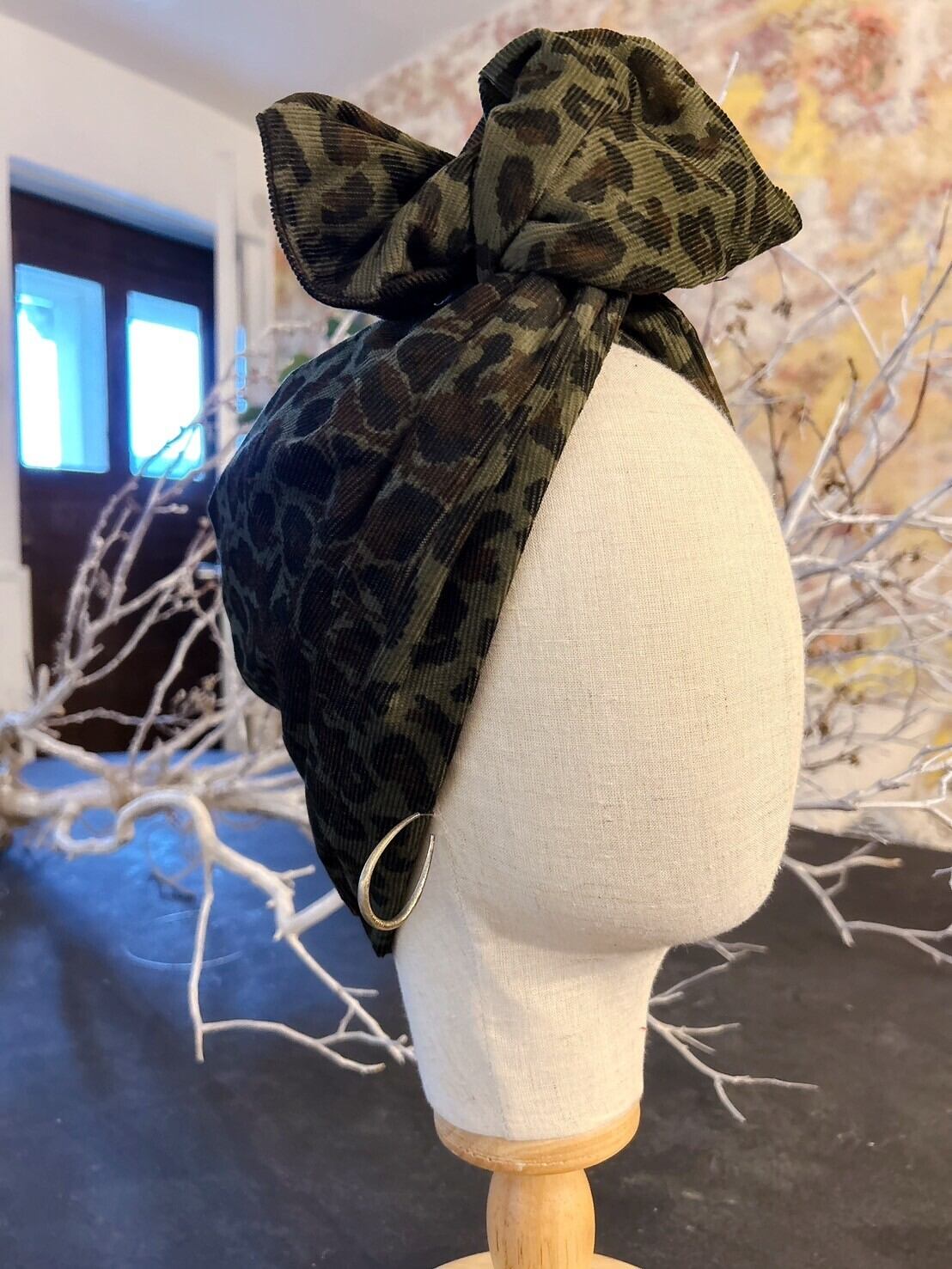 【旅するターバン】レギュラー #155|コーデュロイ|レオパード|グリーンベース|レディース|メンズ